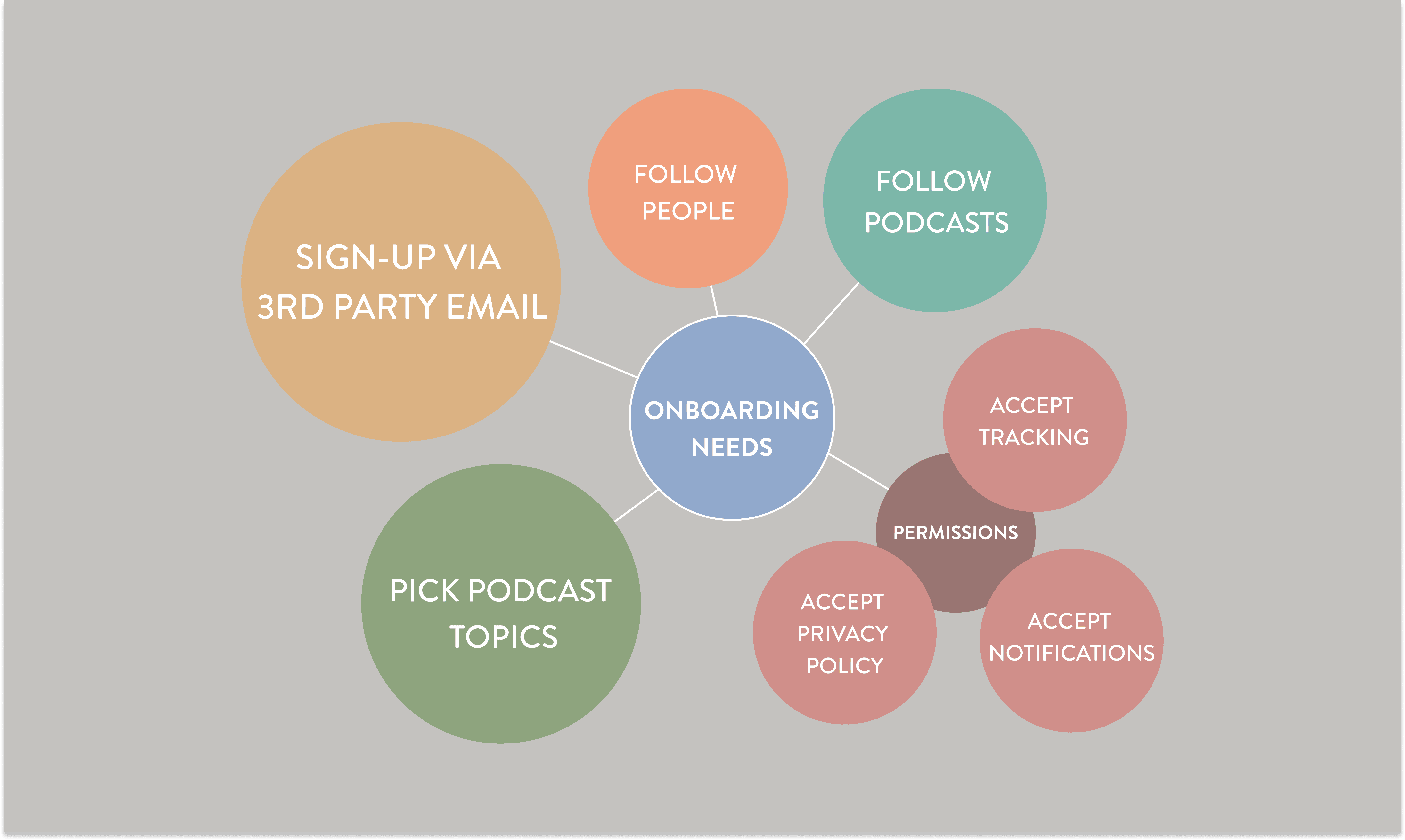 In conversation with the founders, we figured out the actions we needed the user to take, and what could be omitted from the existing onboarding process to speed up user flows. Here are the needs we scoped out: