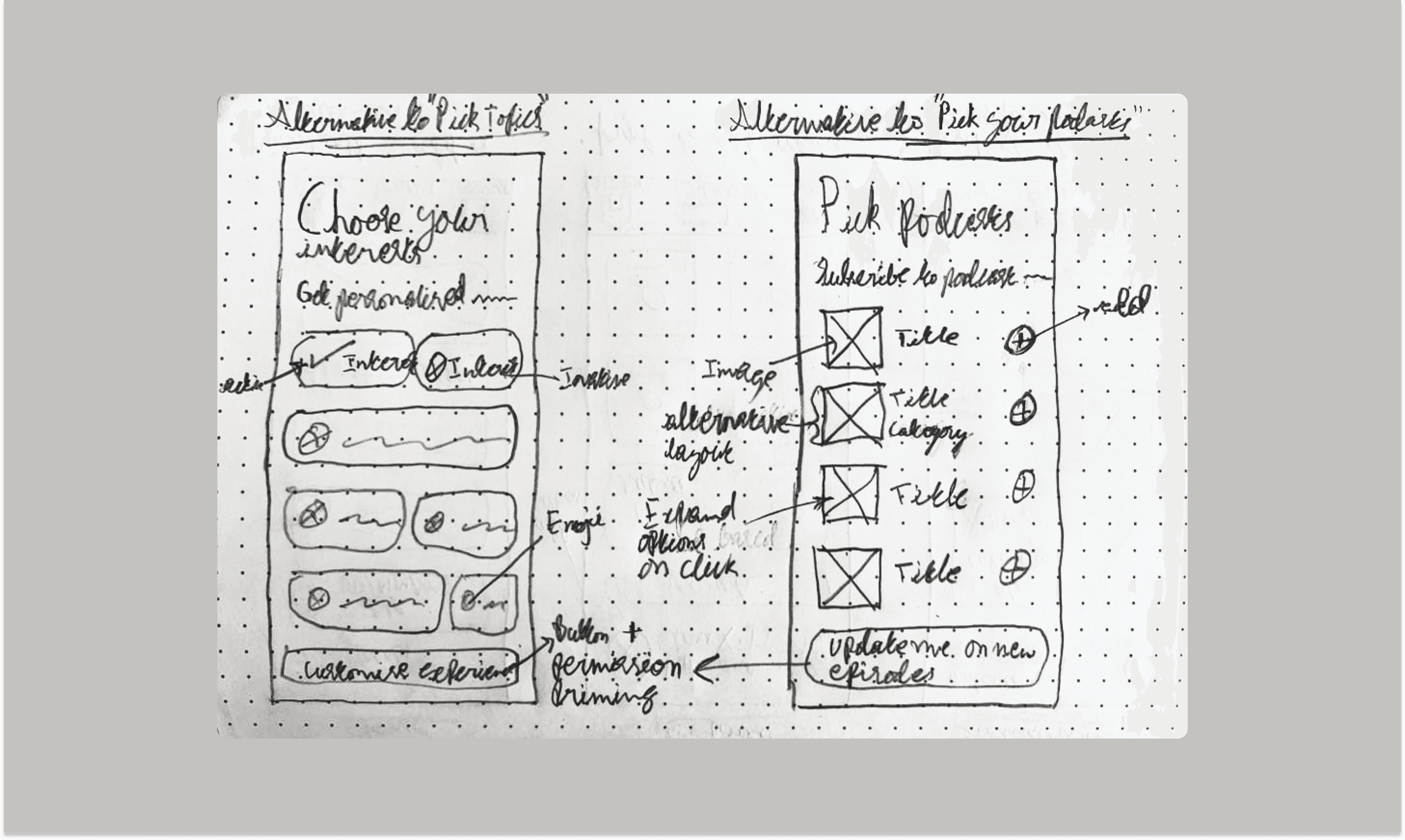Dev time was limited, so we focused on the easiest iteration that addressed key user pain points. We first identified what could be omitted, then explored a few directions before selecting and sketching the most promising flow: