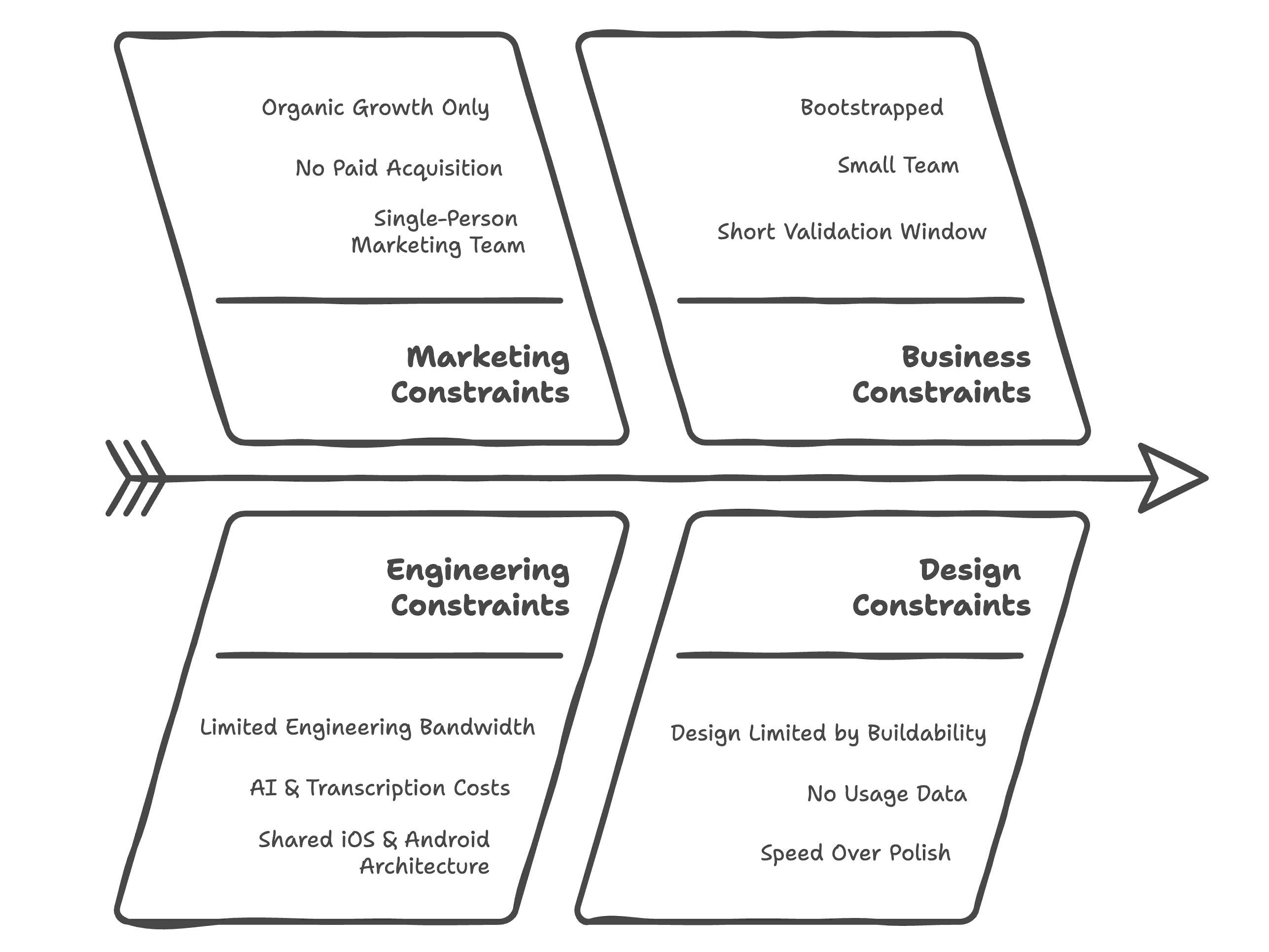 Unvalidated demand, limited engineering bandwidth, and cross-platform requirements shaped every decision. These constraints enforced a bias toward simple, buildable solutions that minimized cognitive load and interaction cost. Rather than designing for scale upfront, the product was designed to learn quickly, with systems and interfaces that could remain stable as complexity increased later.